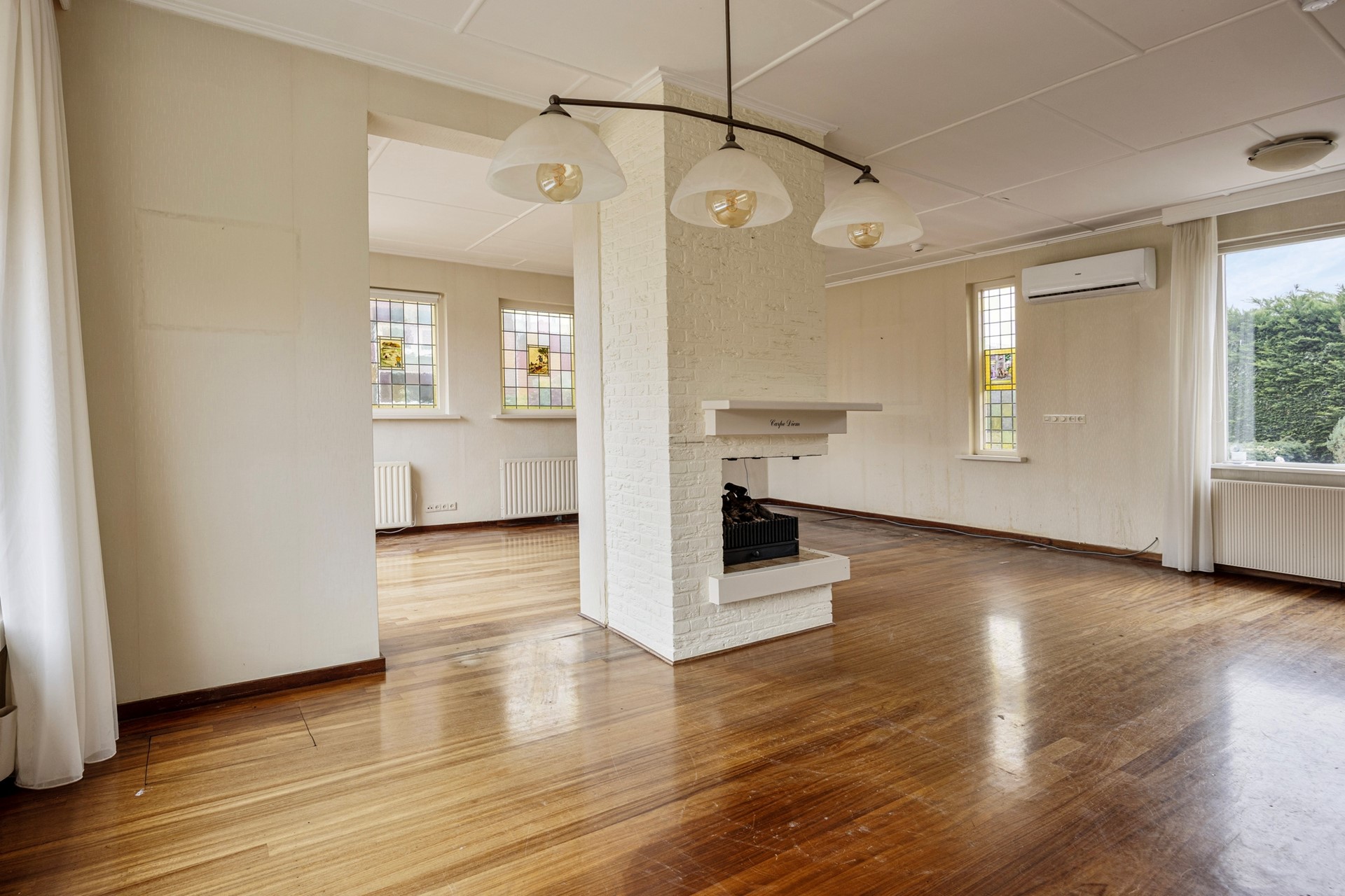 De woning is voorzien van houten kozijnen met grotendeels dubbel glas.