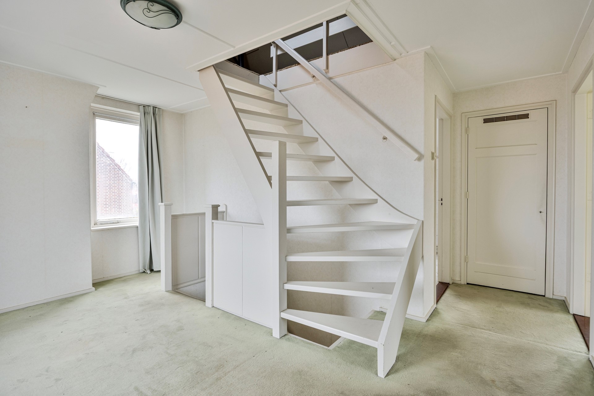 2e verdieping: ruime overloop met trapopgang in het midden van de kamer met een dakraam, opstelplaats CV-ketel en 4e slaapkamer met een dakkapel.
