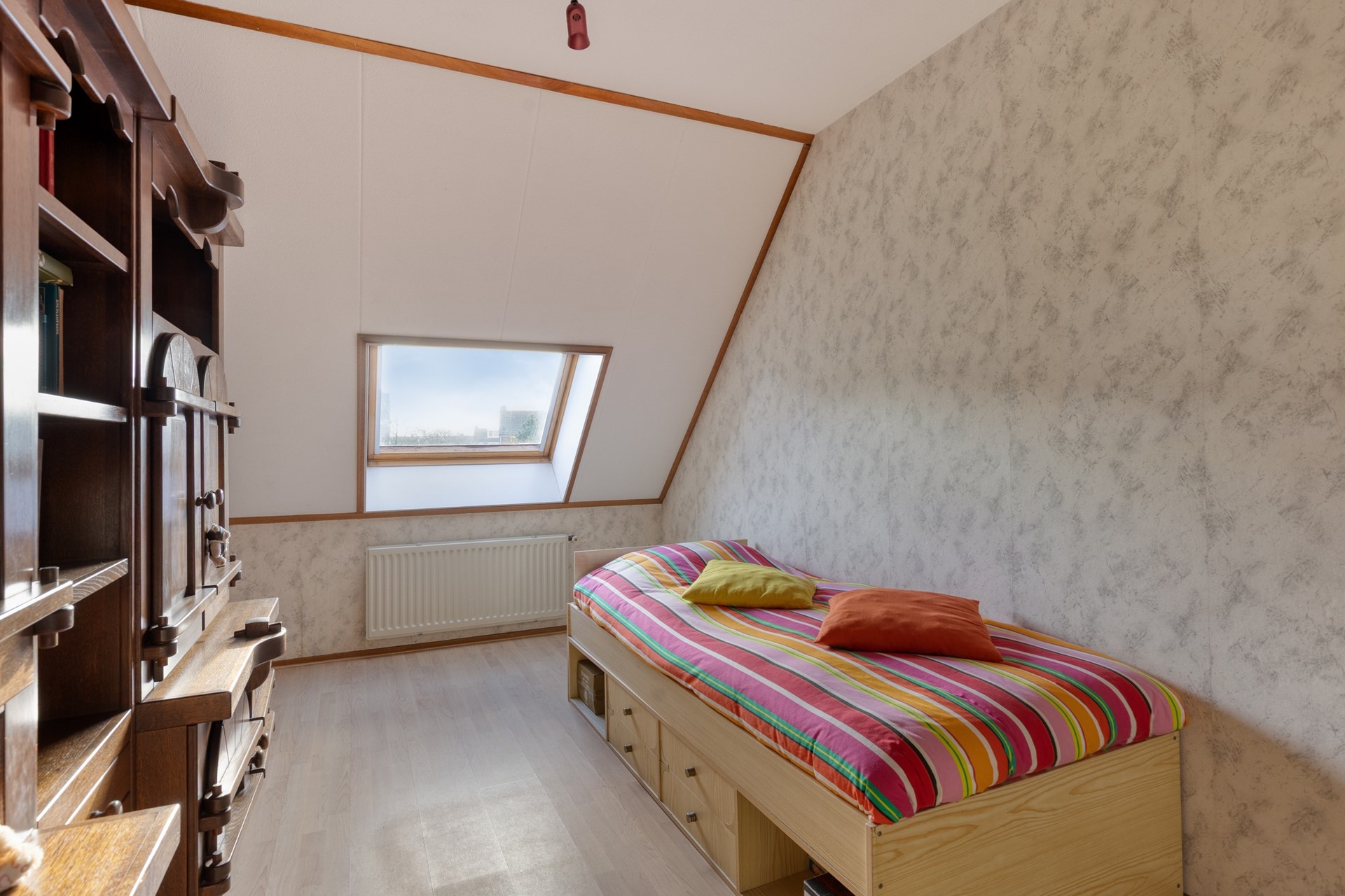 2e verdieping: ruime zolderkamer met een dakraam, bergruimte in de knieschotten, opstelplaats CV-ketel, omvormer zonnepanelen en de mogelijkheid om een 5e slaapkamer te realiseren.