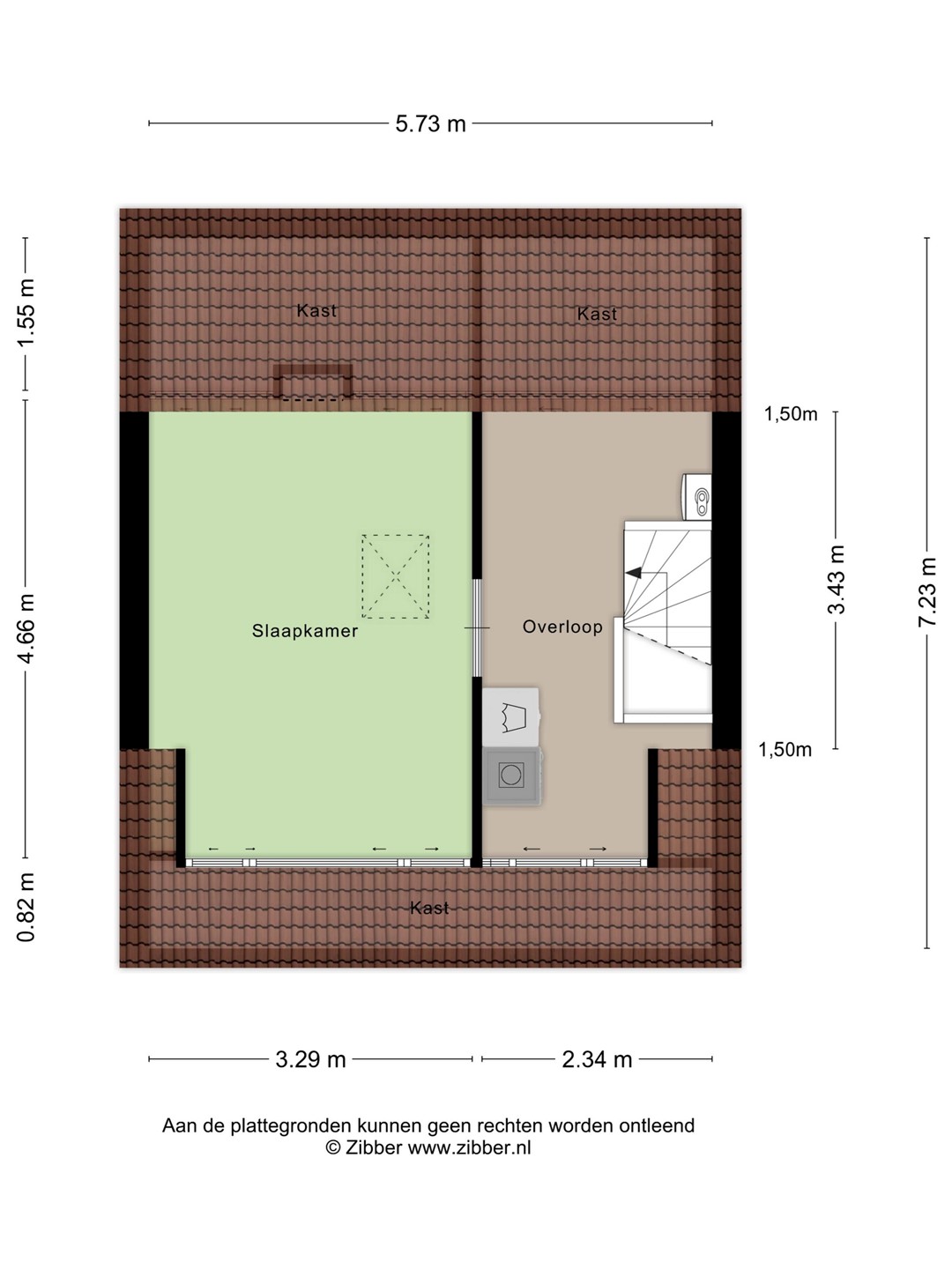 2e verdieping: ruime overloop met opstelplaats wasmachine/droger en CV-ketel, ruime slaapkamer met aan de voorzijde een dakkapel verdeeld over 2 kamers.