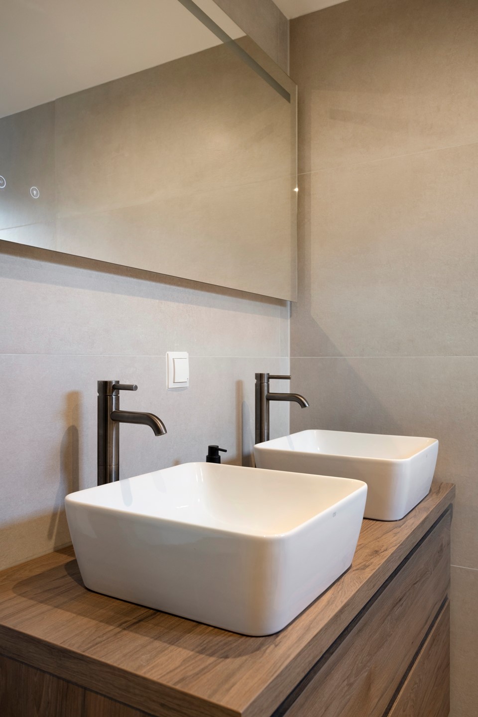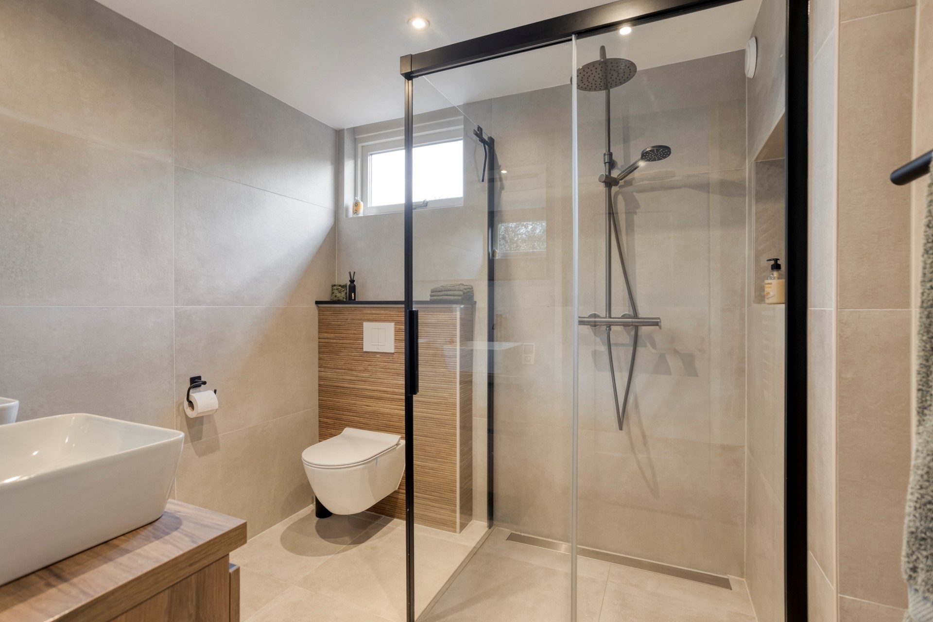 | Badkamervoorzieningen | Dubbele wastafel, Inloopdouche, Toilet, Wastafelmeubel |