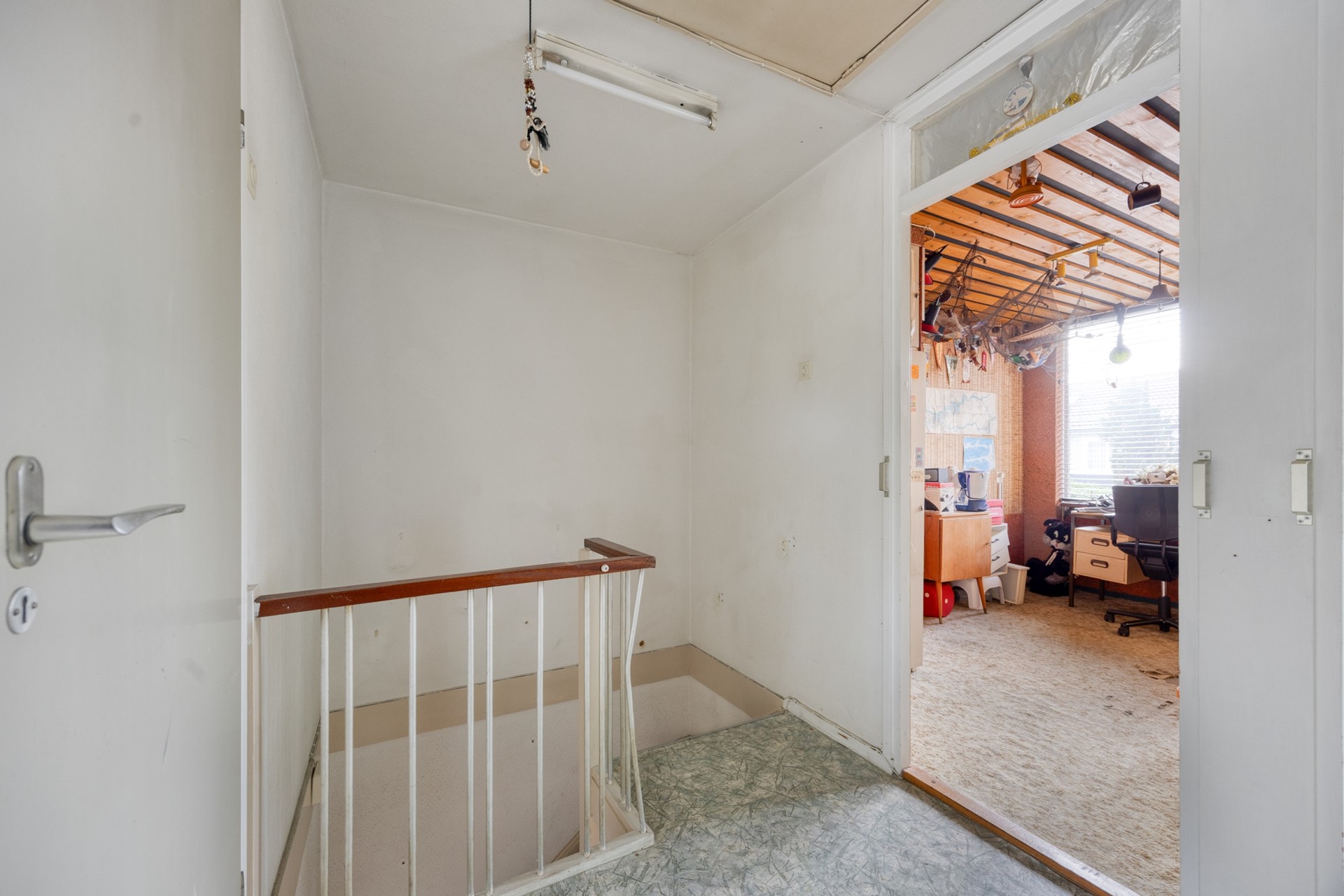 Zolderruimte: bergruimte en een klein dakraam. Met mogelijkheid om kamers te realiseren d.m.v. het plaatsen van dakkapellen en een vaste trap waardoor er meer dan 30m2 extra woonruimte gecreëerd kan worden.