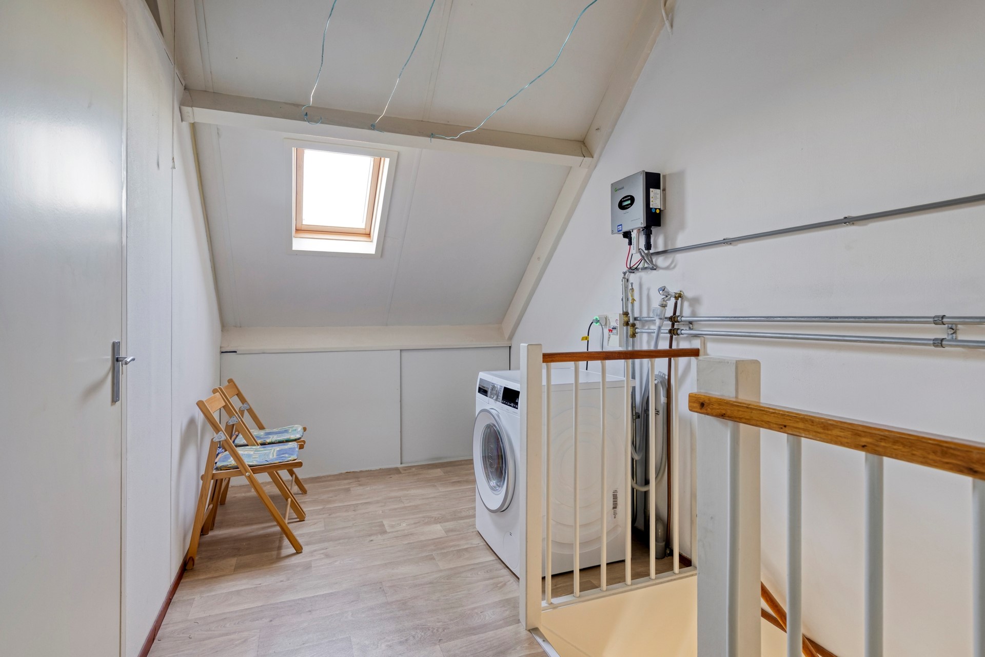 2e verdieping: ruime overloop met een dakraam, opstelplaats CV-ketel, omvormer zonnepanelen, wasmachine/droger, 4e ruime slaapkamer met een dakraam (mogelijkheid om een 5e slaapkamer te realiseren met een dubbele dakkapel).