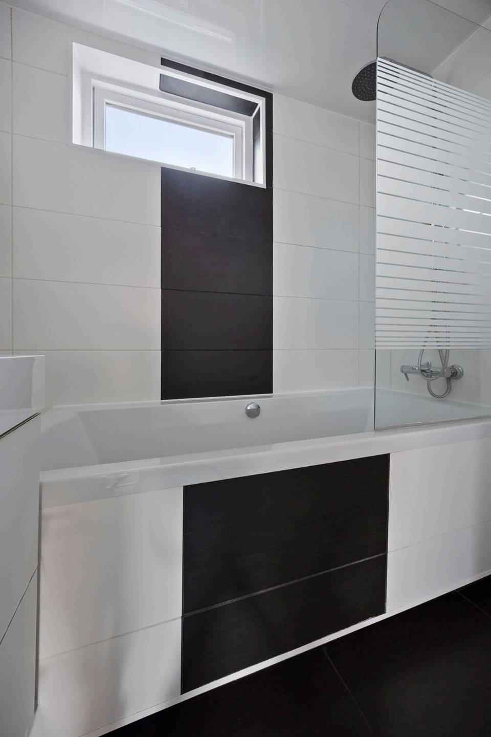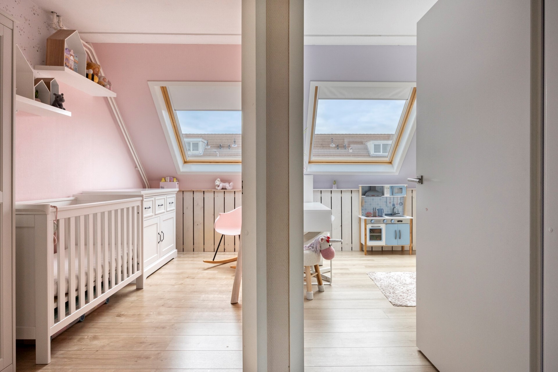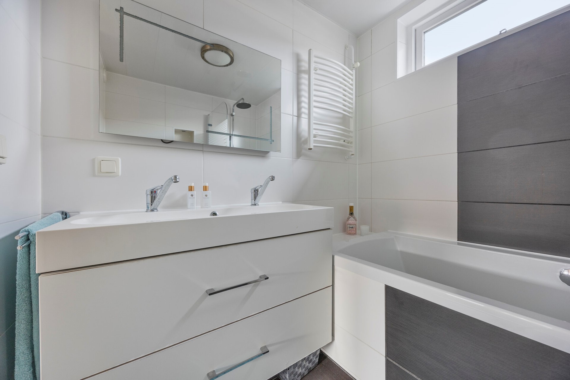 1e verdieping: overloop, 3 slaapkamers waarvan één met een ingebouwde walk-in closet, nette badkamer met de douche in het ligbad, dubbele wastafel met wastafelmeubel en 2e toilet.