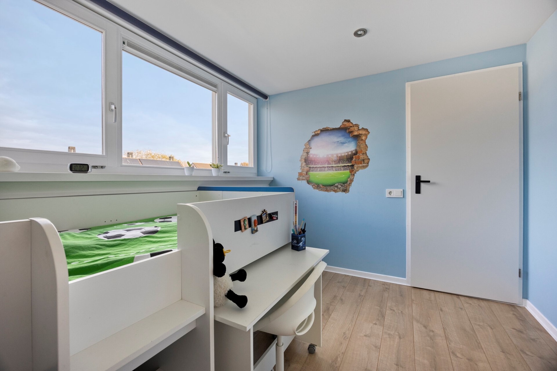 Gelegen in een rustige en kindvriendelijke wijk, een moderne en instapklare 6 kamer eengezinswoning. De woning is voorzien van een ruime luxe keuken met inbouwapparatuur en een lichte woonkamer met openslaande deuren naar de diepe, zonnige tuin op het zuiden met overkapping, berging en achterom. De 1e verdieping beschikt over 3 ruime slaapkamers, waarvan één met walk-in closet en een keurige badkamer. De 2e verdieping heeft 2 extra slaapkamers met aan de voorzijde een dakkapel. Tevens zijn er 7 zonnepanelen.