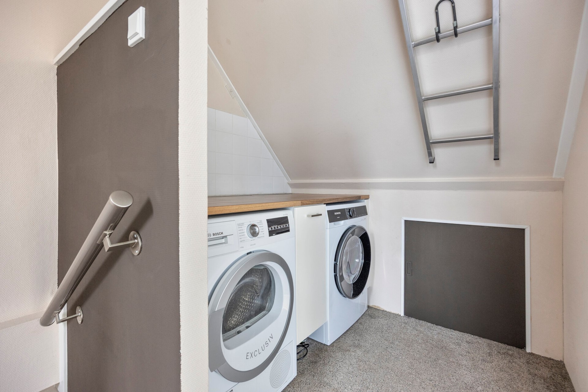 2e verdieping: ruime overloop, opstelplaats CV-ketel, plaats voor wasmachine en droger, 2 slaapkamers met aan de voorzijde een dakkapel.