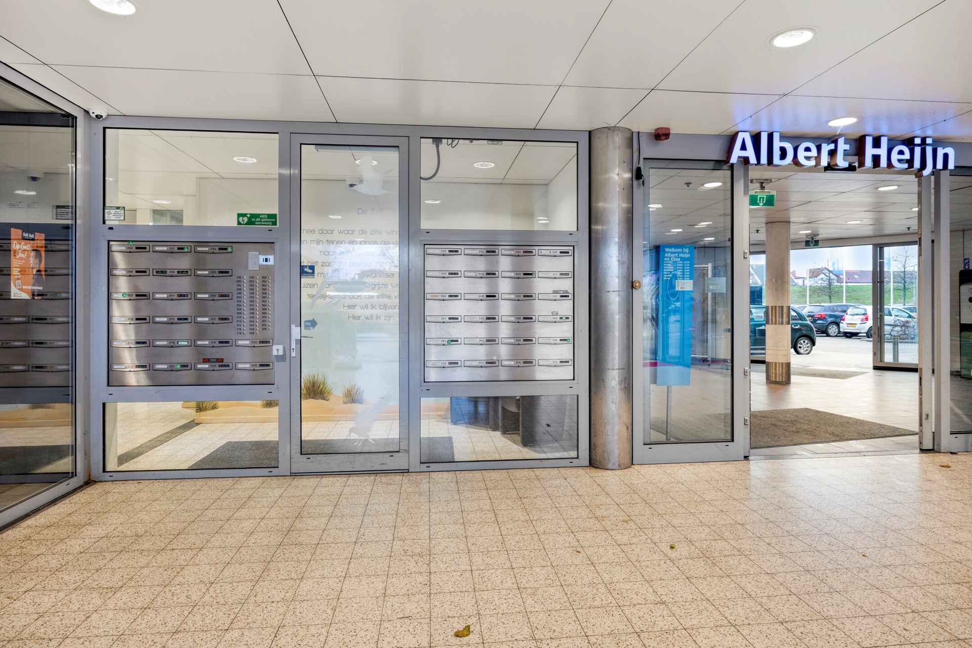 Begane grond: afgesloten portiek met brievenbussen, bellenplateau, video-intercominstallatie, centraal afvaldepot, lift en trappenhuis. Alle deuren in de algemene ruimtes van het complex zijn voorzien van automatische deuren te openen door drukknoppen.